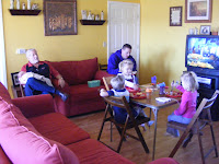 We started our Christmas celebration at Jason's grandparents' in Lafayette on the 20th. The kids had a wonderful time opening presents, seeing Santa deliver some presents for them and their cousin, playing with their cousin and eating some great food. Following all the celebrating at Jason's grandparents' it was off to his parents' to celebrate with them and his brother. On the way there Priss complained about her tummy hurting but we just attributed it to not using the bathroom. We arrived at his parents and were waiting for his brother and grandparents to arrive when Swee climbed into my lap, snuggled in and then proceeded to get sick all over me. Stomach flu on Christmas. Not long after Swee got sick Priss was getting sick too. I had just thought no one has been sick on Christmas for a really long time. Jinks! The kids were troopers and did their best to open some of their presents from Uncle B. Priss actually opened a present and then got sick all over everything. Swee took a nap and woke up at about 10 p.m. ready to finish opening his presents. It was a rough night but not as bad as it could have been had the kids not received priesthood blessings from Jason. By the morning they were feeling better. Priss woke up and was ready to play. After letting the kids play some we packed up the car and headed home for a few days.